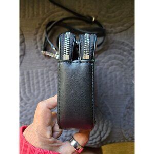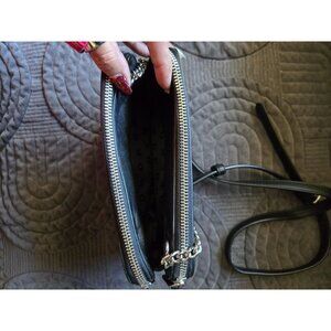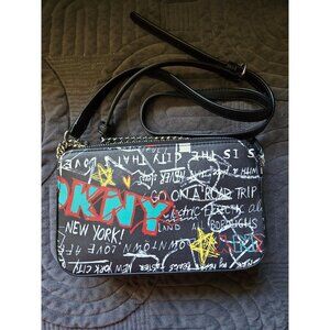 DKNY Black Graffiti Print Crossbody Bag With Double Zipper Compartments & Adjust