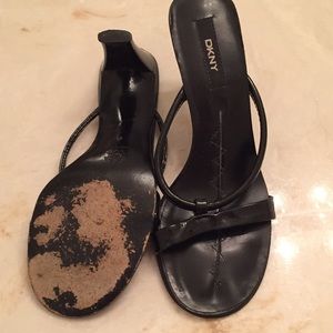 These black strappy heeled sandals are in EUC. The bottoms are worn but the show itself is perfect.