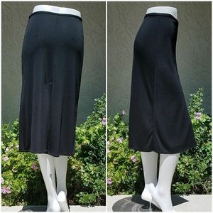 DKNY black midi length skirt with high front slit and side slit. Rayon polyester blend. EUC. Perfect condition. Open to offers.