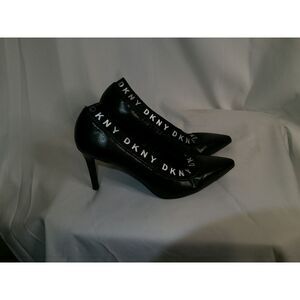 Keywords: DKNY pumps, black leather heels, pointed toe pumps, designer shoes, stiletto heels, logo pumps, formal shoes, office wear, classic heels, professional footwear