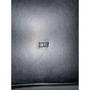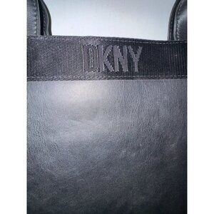 This DKNY tote bag embodies sophisticated style and utility. Crafted from smooth black leather, it features the iconic DKNY logo for a refined touch. Its spacious interior and sturdy handles make it a versatile accessory suitable for various occasions, blending elegance with practicality seamlessly.