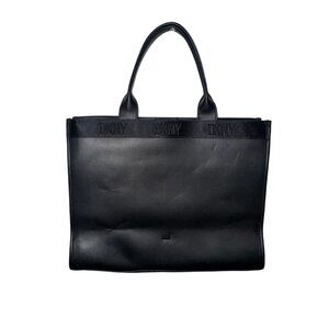 DKNY Black Leather Tote Bag With Handles & Logo Design