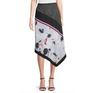 DKNY Black Light Blue Floral Asymmetric Midi Skirt