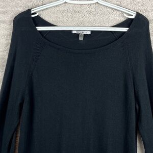 DKNYC Donna Karen New York City lightweight black sweater with bottom sheer hem in excellent condition.