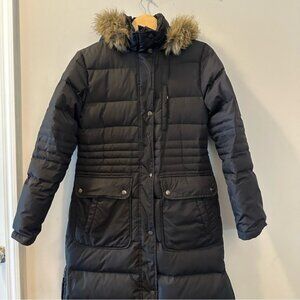 DKNY Black Long Down Puffer Coat Fur Trim Hood Hooded Winter Parka Sz Small