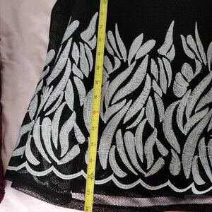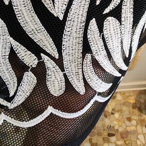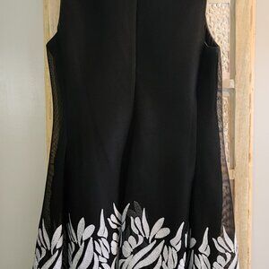 DKNY Black Mesh Fit & Flare Dress with White Leaf Embroidery Size 14