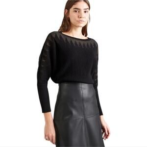 DKNY Black Neutral Monochromatic Sheer Inlay Ribbed Sweater Plus Size 2X New