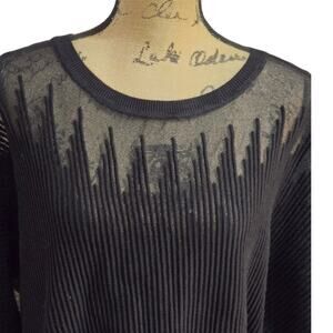 DKNY Black Neutral Monochromatic Sheer Inlay Ribbed Sweater Plus Size 2X New