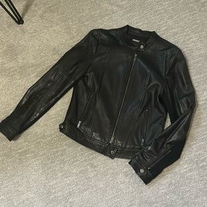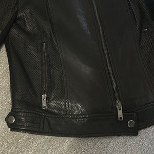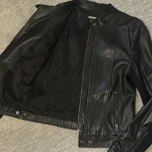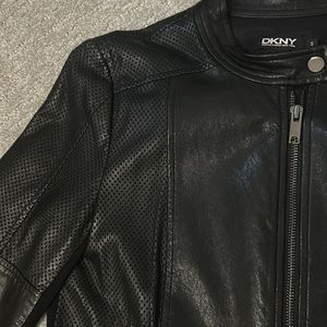 DKNY Black Perforated Leather Moto Jacket Size Small