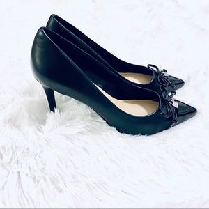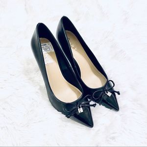 DKNY Black Pointed Toe Heel Pumps Bow & Locket 8.5