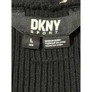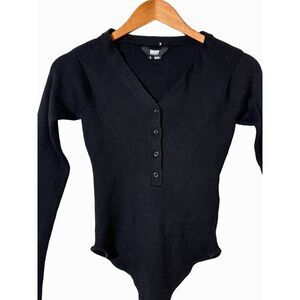 DKNY Black Ribbed Henley Long-Sleeve Bodysuit Button Front Size Medium