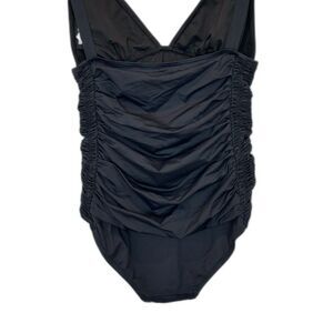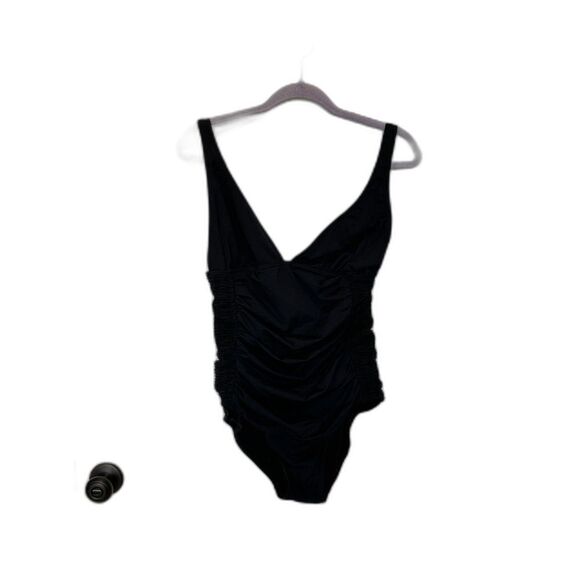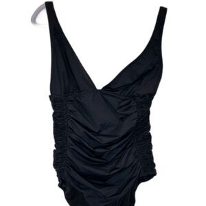 DKNY Black Ruched Sides V-Neck One Piece Swimsuit Size 14