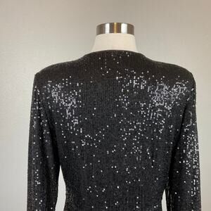 DKNY Black Sequined Long Sleeve Cocktail Dress Size 8 V-Neck Tuxedo Sheath