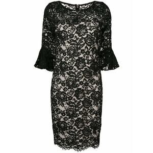 DKNY Black Sheath Embroidered Lace Cocktail Wedding Bell Sleeves Dress Size 4