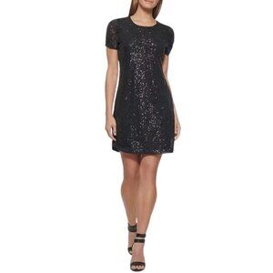 DKNY Black Short Sleeve Crew Neck Sequin Cocktail Mini Dress Sz 6