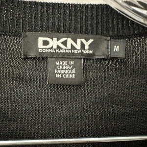 DKNY Black Silk Cardigan Purple Lace Inlay Front Button Up Size Medium