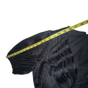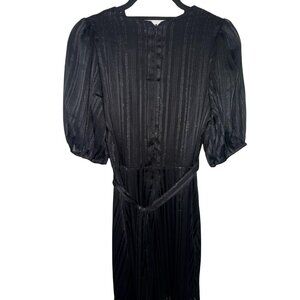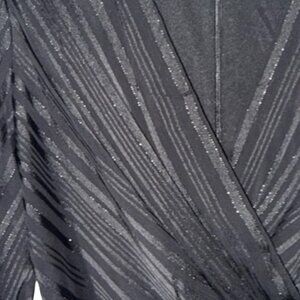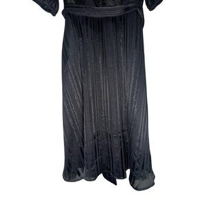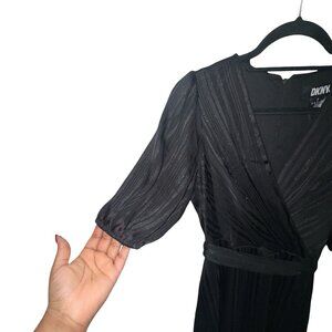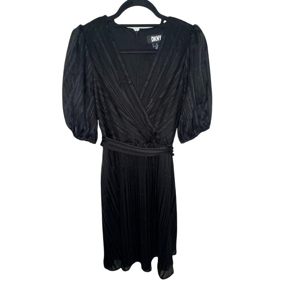 DKNY Black With Silver Metallic Striped Faux Wrap Dress W Tie Belt Sz 8 NWT