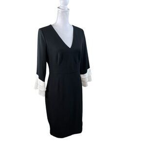 DKNY Black White Bell Ruffled Sheath Dress Formal Office Party Minimalist 8