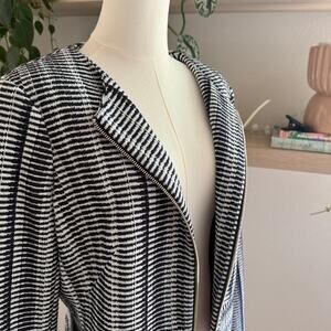 DKNY Black White Striped Front Zip Jacket Size 12 Preppy Workwear Classic
