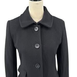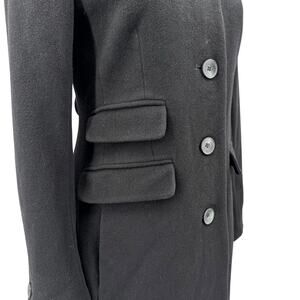DKNY Black Wool Cashmere Blend Button Front Longline A-line Flare Warm Pea Coat