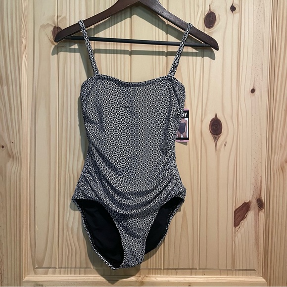 DKNY Black and White Geometric Swimwear Size Small NWT