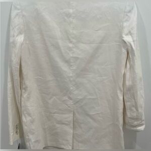 DKNY Blazer Size 4 Cream Color Linen Fabric Front Pockets One Button Closure