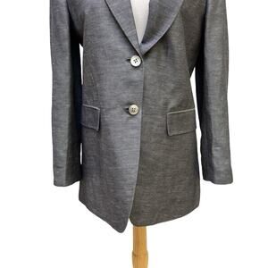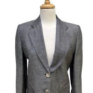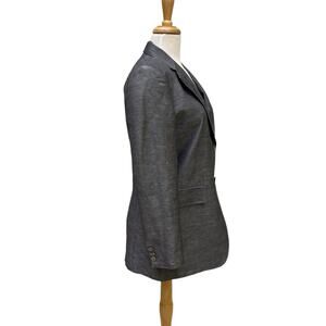 DKNY Blazer Sz 4 Linen Silk Blend Long 2 Button Lightweight Minimalist Preppy
