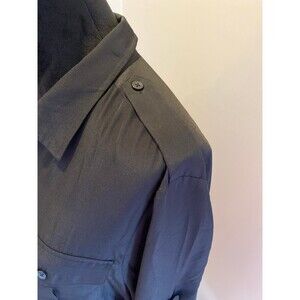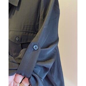 DKNY Blouse Button Down Plus Size XL Black Top Pockets Slit Sides Rounded Bottom