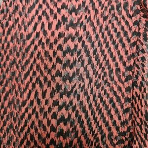 Elevate your wardrobe with this stunning DKNY blouse top in black and gray with a geometric pattern. The collared neckline, long sleeves, and sheer draped layered that can be tied or worn loose. The design makes it perfect for any occasion, whether it's for travel, casual outings, workwear, or business meetings. The button-up closure and accents add a touch of sophistication, while the sheer polyester material ensures it's machine washable for easy care. Size tag was removed. My thoughts are that it's a large looking at the measurements. This blouse is suitable for summer, fall, and spring seasons.