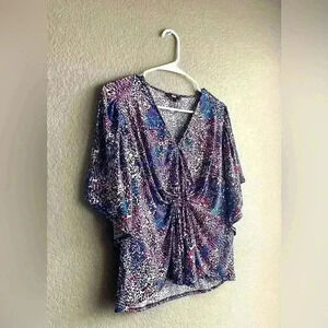 DKNY Blouse Womens Small Blue Purple Flutter Sleeve Pullover Stretch Good preowned condition