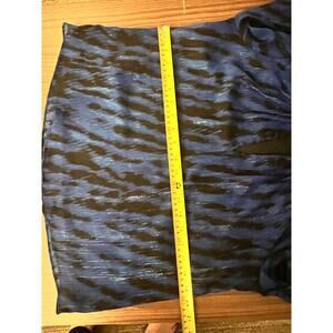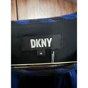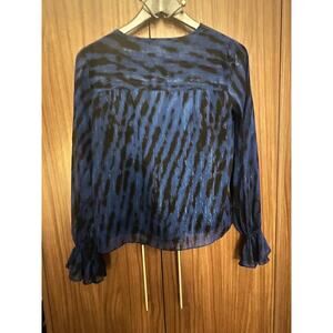 DKNY Blouse XS Blue Black Long Sleeve Sheer Top Ruffle Cuff Women’s Shirt
