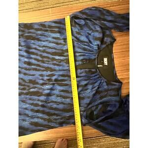 Elevate your wardrobe with this stylish DKNY blouse in a striking blue and black abstract print.