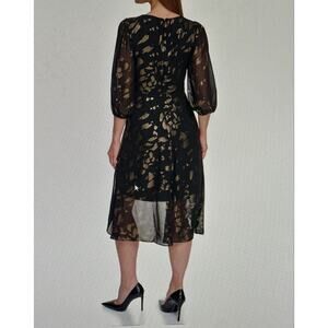DKNY Blouson Sleeve Metallic Animal print Chiffon Dress