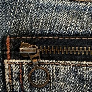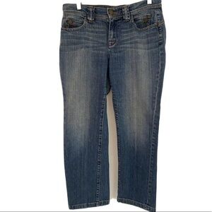 DKNY Blue Denim Distressed Straight Leg Jeans 8P Petite Stretch Zip Pockets