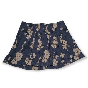 DKNY Blue Floral Print Zip Back Mini Skirt
