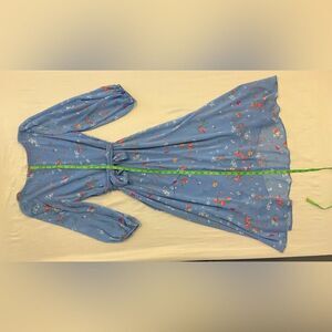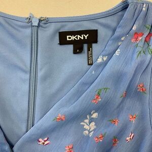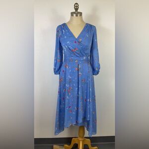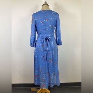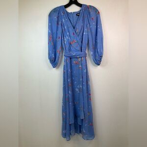 DKNY Blue Floral Wrap Dress Balloon Sleeves Maxi Women’s Sheer Lined Size 2