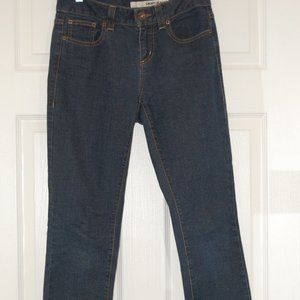 DKNY Dark Blue Jeans Size Women's 2 R Waist 15", Rise 10", Waist to Cuff 40" , Inseam 32", Leg Hemline 5 1/2" Good Preowned Condition