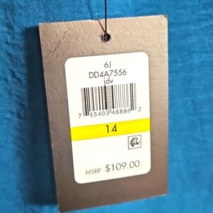 DKNY Blue Puff Sleeve A-Line Dress Size 14 NWT