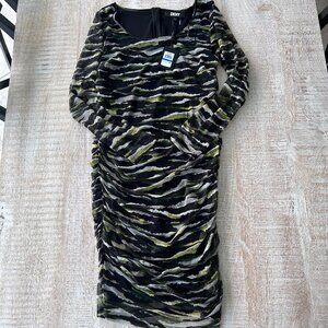 DKNY Bodycon Mesh Ruched Dress Green Black Size Extra Large NWT