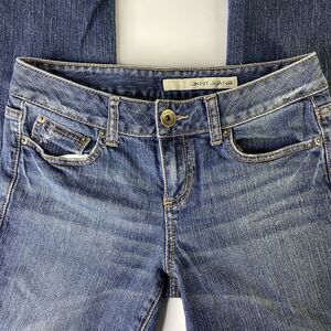 DKNY Boot Cut Jeans Womens 6 Distressed Denim Straight Leg Mid Rise