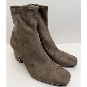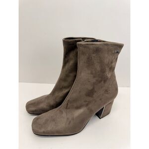 DKNY Boots Size 6 Brown Square Toe Block Heel Textile Side Zip