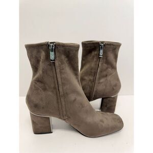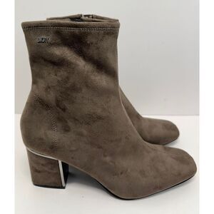DKNY Boots Size 9 Brown Square Toe Block Heel Textile Side Zip