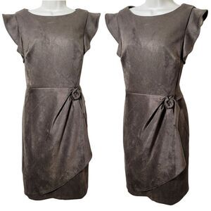 DKNY Brown Faux-Suede Side-Draped Cap Sleeve Sheath Dress - Toffee