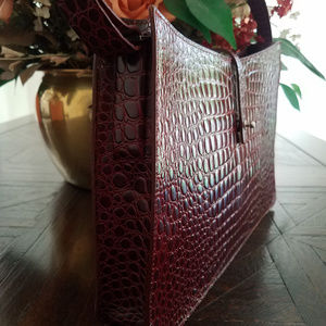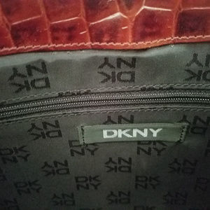 DKNY Brown Genuine Leather Croc Embossed Design Women's Small Adjustable Strap Shoulder Bag