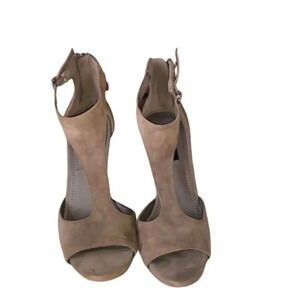 DKNY Brown Suede Colby T-Strap High Heels Sandals Size 5.5