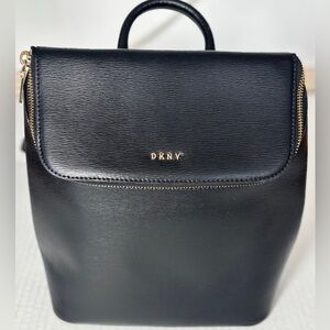 DKNY Bryant Top Zip Backpack Black Gold Hard wear Like New Roomy Bag Stylish