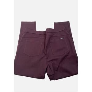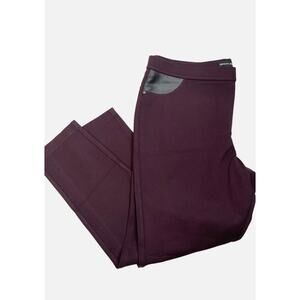 DKNY Burgundy Leggings Size L Faux Leather Trim Pull-On Pants Faux Pockets NWT