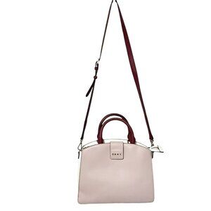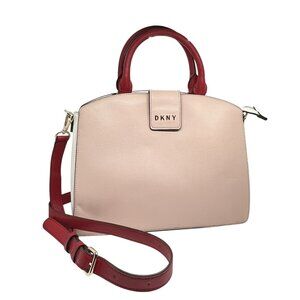 DKNY CLARA LEATHER SATCHEL CROSSBODY BAG RED PINK GOLD TONE COLORBLOCK NWT