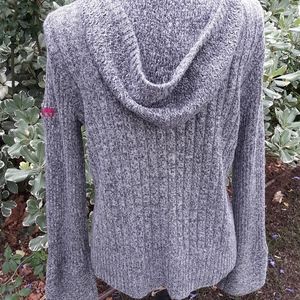 Cable Knit 1/2 Zip Hooded Sweater, size Large Petite, grey. Great condition, logo on shoulder
