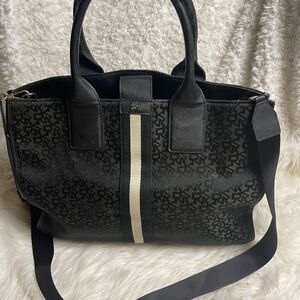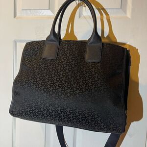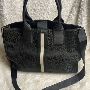 DKNY Carlita Large Black Fabric logo satchel with synthetic leather trim &straps